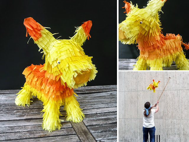 Für den Geburtstag einer Freundin habe ich eine Pinata gebastelt (Ihr wisst schon dieses Ding mit Fransen auf die man einschlägt bis es seinen Inhalt preisgibt). Es ist wirklich nicht schwierig, nur etwas zeitaufwendig mit den ganzen Trocknungsphasen des Kleisters. Aber manchmal ist so eine kleine Bastelarbeit zwischendurch ja auch sehr entspannend.
